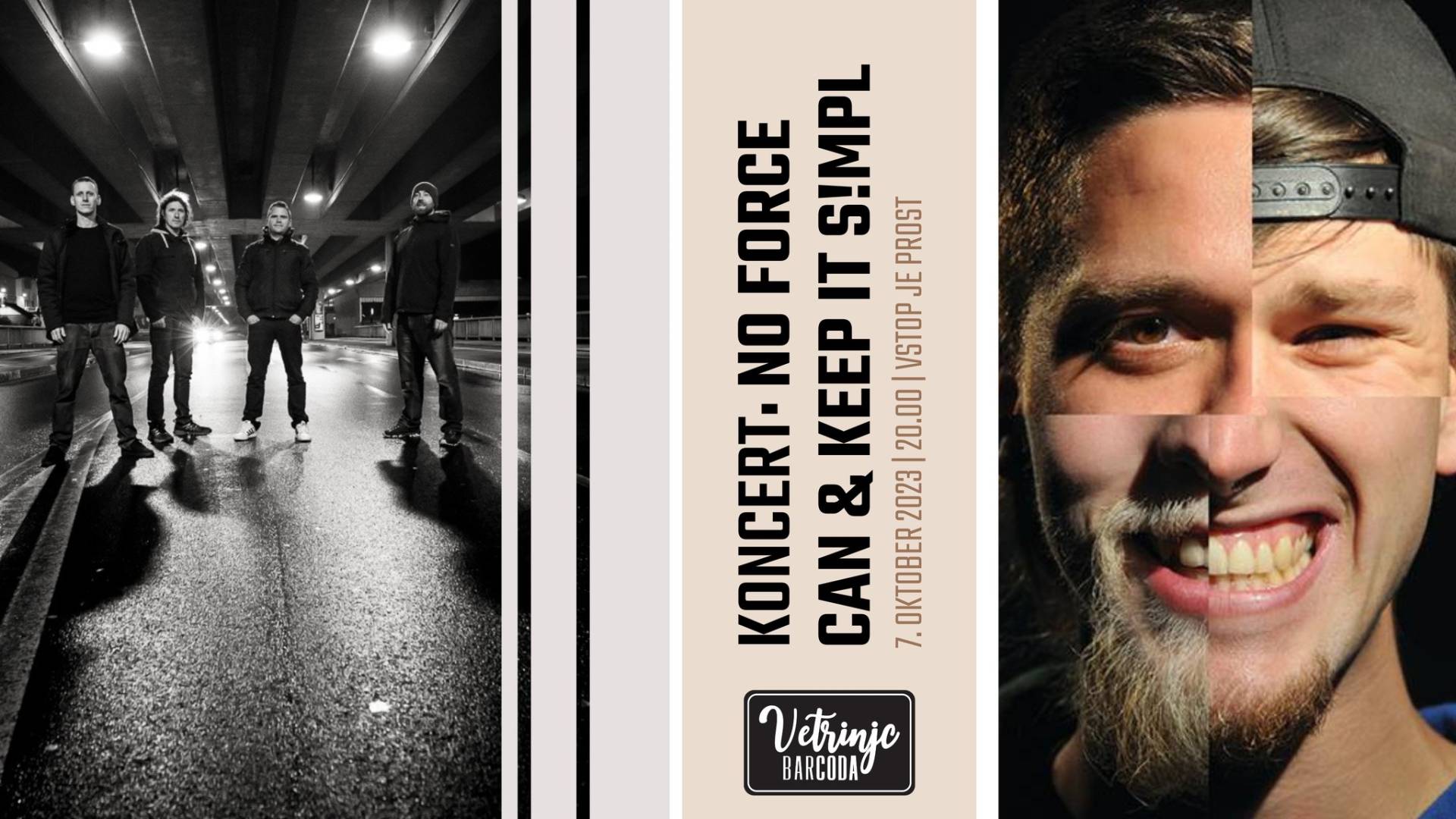 Vetrinjski dvorMariborska ekipa No Force Can združuje elemente alternativnega rocka, indiea ter punk-rocka. Eksplorativnost in radovednost pomešana z omenjenimi stili pogosto rezultira v tem, da preproste a spevne melodije združijo z zanimivimi, ne-vsakdanjimi ritmi. Težko pa se izognejo tudi temu, da v pesem vgradijo kakšno presenečenje, ki daje občutek preobrata.
