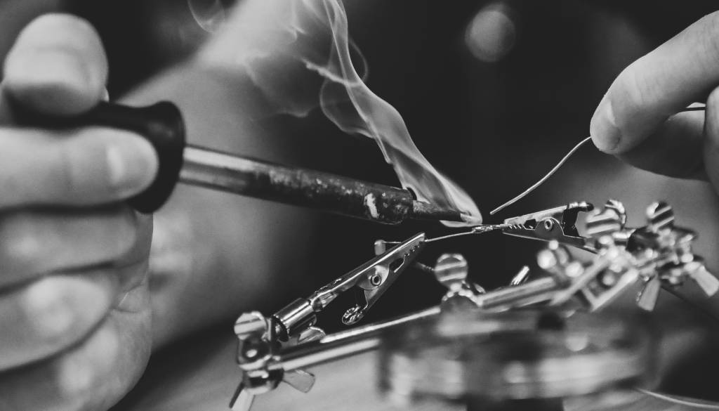 Na delavnici boš poleg ostalih elementov v vijoličasto ohišje spajkal tudi majhne led lučke, ki bodo tvorile ekranček večjih “pikslov” in bodo prikazovale tekst ali pa celo preproste animacije!
