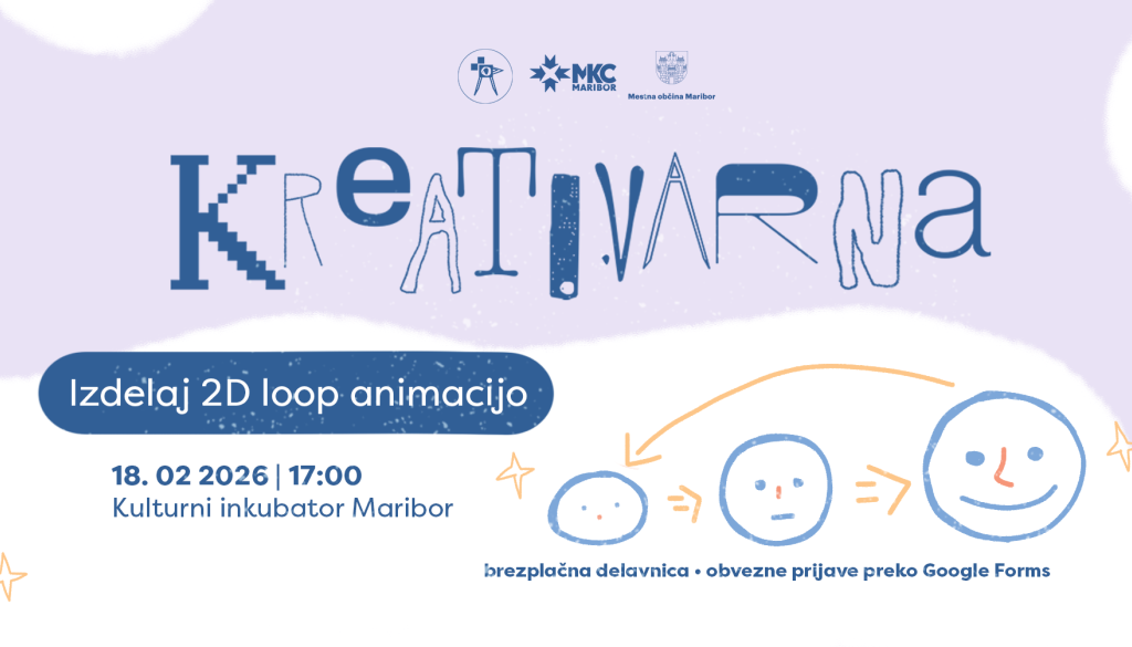 Kulturni inkubator, Koroška ulica 18, Mariborebruarska Kreativarna bo v Kulturnem inkubatorju potekala v sredo, 18. februarja 2026. Delavnica bo namenjena izdelavi 2D loop animacije.