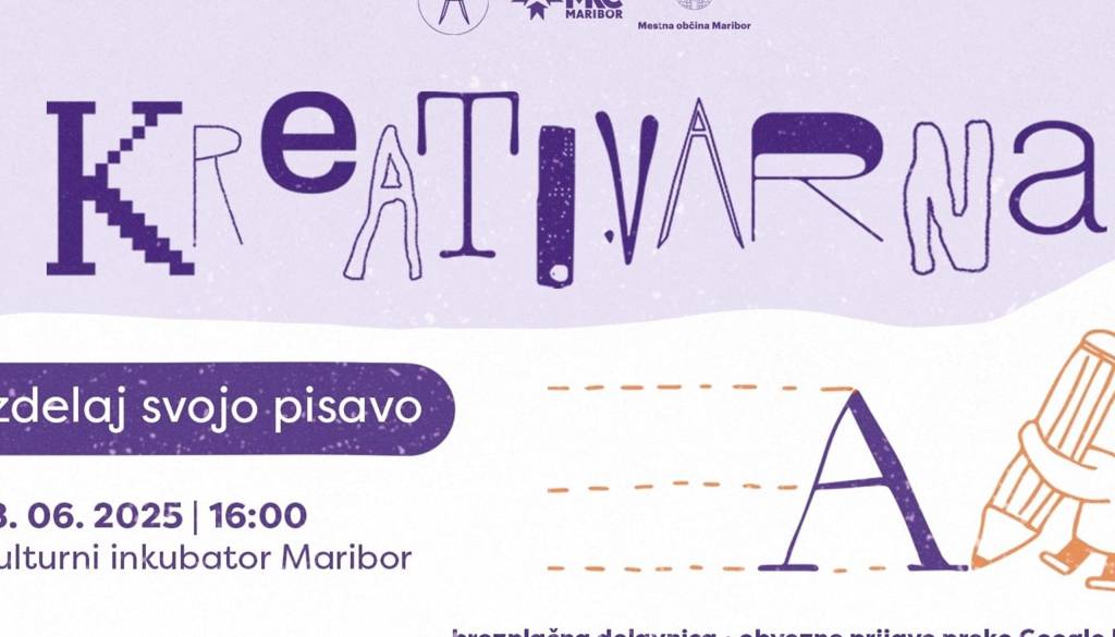 V sredo, 18. junija 2025, bosta Melani Kumin in Beti Trstenjak izvedli Kreativarno, brezplačno delavnico, na kateri si bodo udeleženci lahko idelali svojo pisavo. Delavnica se bo v Kulturnem inkubatorju začela ob 16. uri. Ob prvem srečanju bomo raziskovali kreativno tipografijo in ustvarili svojo digitalno črkovno vrsto s pomočjo orodja Calligraphr.