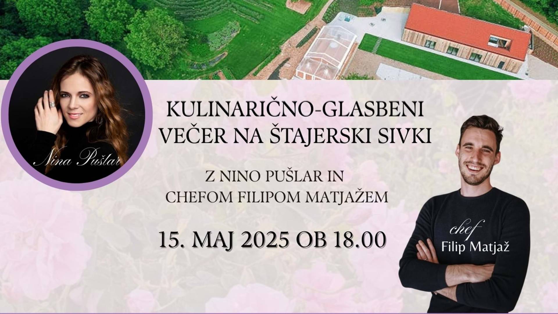 Kulinarično-glasbeni večer na Štajerski sivki z Nino Pušlar in chefom Filipom Matjažem