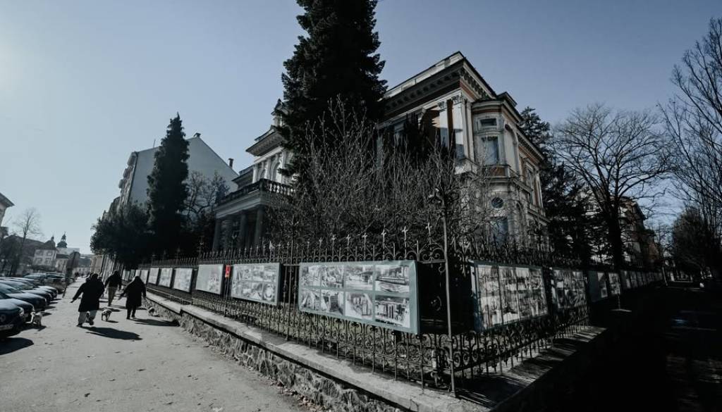 Ogledi razstav na ograji muzeja: Mi z Vošnjakove 1 in 70 let koče na Žavcarjevem vrhu.