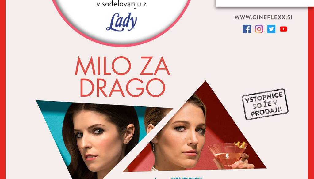 Cineplexx MariborV četrtek, 13. septembra bo Cineplexxu Maribor ponovno večer rezerviran za dame. Tokrat jih bo navdušil eleganten triler, poln preobratov in izdaj, skrivnosti in razodetij, ljubezni in zvestobe, umora in maščevanja. Milo za drago (Simple Favor), režiserja Paula Feiga. Vse obiskovalke Ladies nighta bodo prejele promocijski izvod revije Lady.