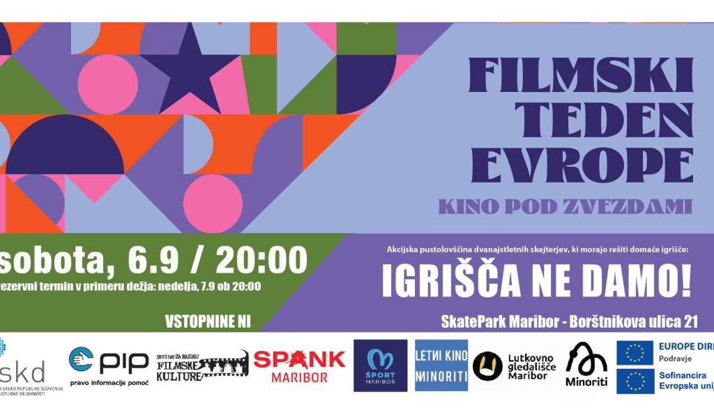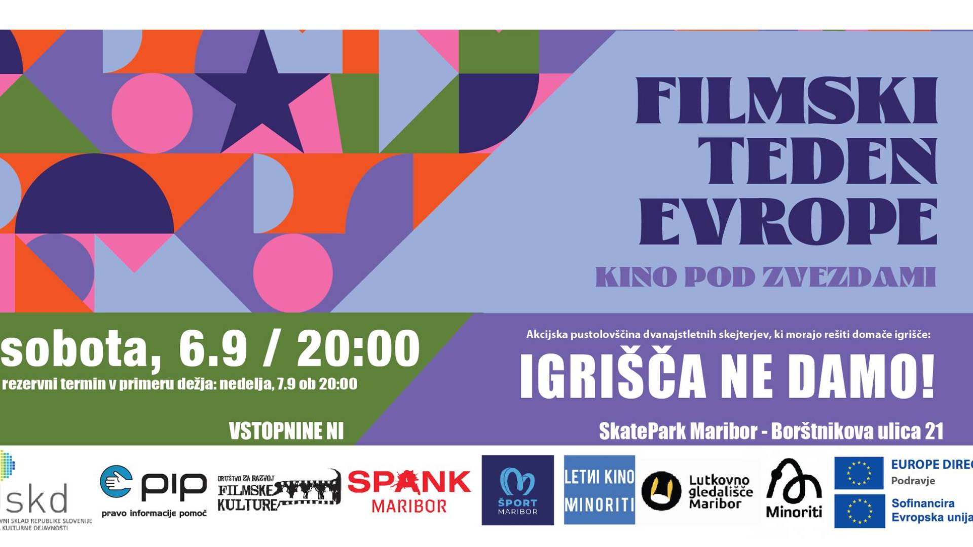 Društvo za razvoj filmske kulture nadaljuje s svojo tradicijo in poslanstvom vzpostavljanja novih kino lokacij po mestu, s čimer želimo dostop do kakovostnih filmov in projekcij omogočiti najširšemu krogu Mariborčank in Mariborčanov. Lani smo prvič v letni kino spremenili Skatepark Maribor in z veseljem se tja vračamo tudi letos, s še kako umestnim filmom Klemna Dvornika Igrišča ne damo!, ki prikazuje upor najstnikov proti rušenju njihovega igrišča in skateparka.