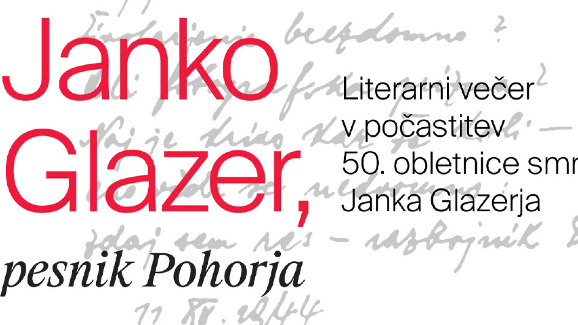V počastitev 50. obletnice smrti Janka Glazerja – pesnika, bibliotekarja, literarnega in kulturnega zgodovinarja, urednika ter dolgoletnega ravnatelja Študijske (danes Univerzitetne) knjižnice Maribor, dijaka in profesorja klasične gimnazije (danes Prve gimnazije) ter v obeležitev svetovnega dneva poezije vas Drama SNG Maribor v sodelovanju z Univerzitetno knjižnico Maribor, Pokrajinskim arhivom Maribor, Mariborsko knjižnico in Prvo gimnazijo Maribor vabi na literarni večer JANKO GLAZER, PESNIK POHORJA.