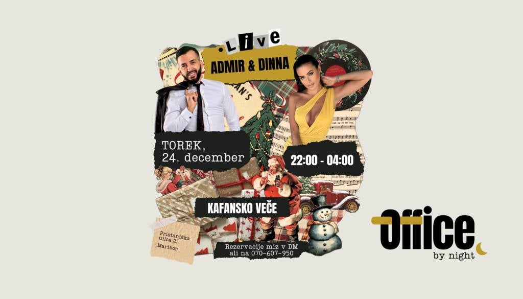 V torek, 24.12., ob 22:00, vas vabimo na KAFANSKO VEČE, kjer bosta nastopila Dina Arapović & Admir Ibričić 🎤🎶
