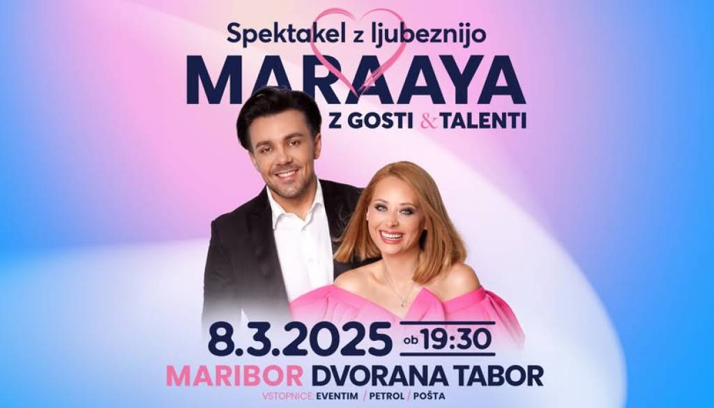 Pridružite se nepozabnemu dogodku, ki ga pripravljata Marjetka Vovk in Raay, znana kot MARAAYA. S svojo neizmerno ljubeznijo do glasbe sta osvojila srca poslušalcev po vsej Sloveniji, zdaj pa prihajata v Maribor z največjim spektaklom doslej. Spektakel z ljubeznijo je koncertna izkušnja, ki je ne smete zamuditi!