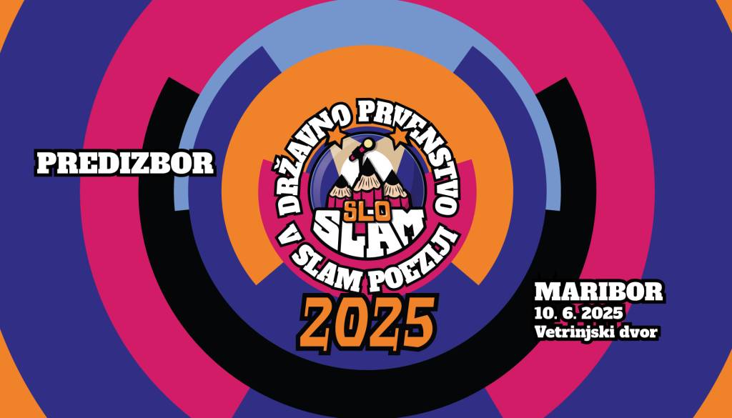 Atrij Vetrinjski dvorNa literarnem dogodku v atriju Vetrinjskega dvora bo Mladinski kulturni center Maribor v sodelovanju s partnerji v torek, 10. junija 2025, gostil mariborski predizbor državnega prvenstva v slamovski poeziji, na katerem bomo dobili dva finalista, ki se bosta na devetem državnem prvenstvu v slamovski poeziji avgusta 2025 na Ptuju v organizaciji Zavoda za mladino, šport in turizem potegovala za naziv državnega prvaka oz. prvakinje.