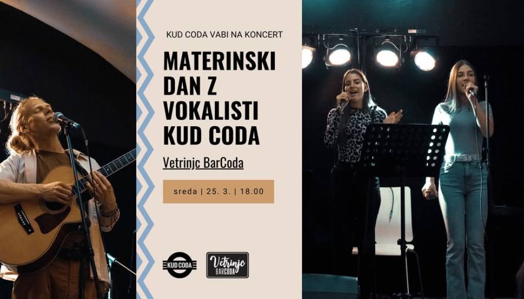 Vetrinjc - BarCodaVsako leto se ob materinskem dnevu z glasbo poklonimo našim super mamam, pa tudi atejem, babicam, tetam, dedkom … To je koncert za vas! Pripravljamo nabo pesmi, ki so nekoliko manj rockerske in predvsem precej bolj ‘domače’, kot je običajno za naše koncerte.