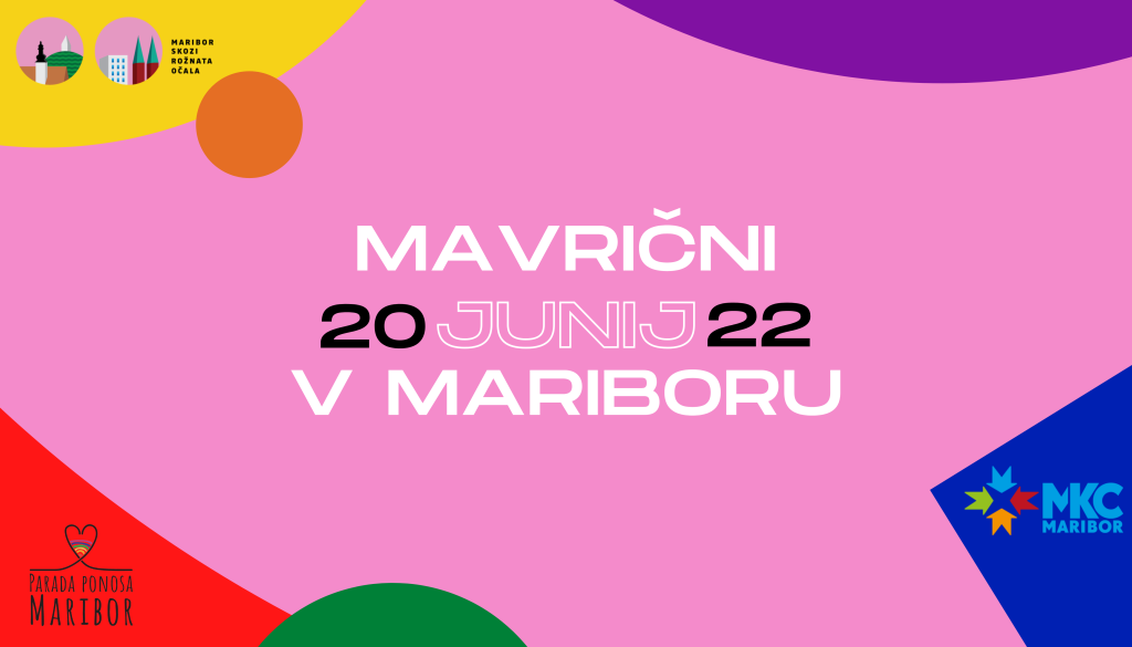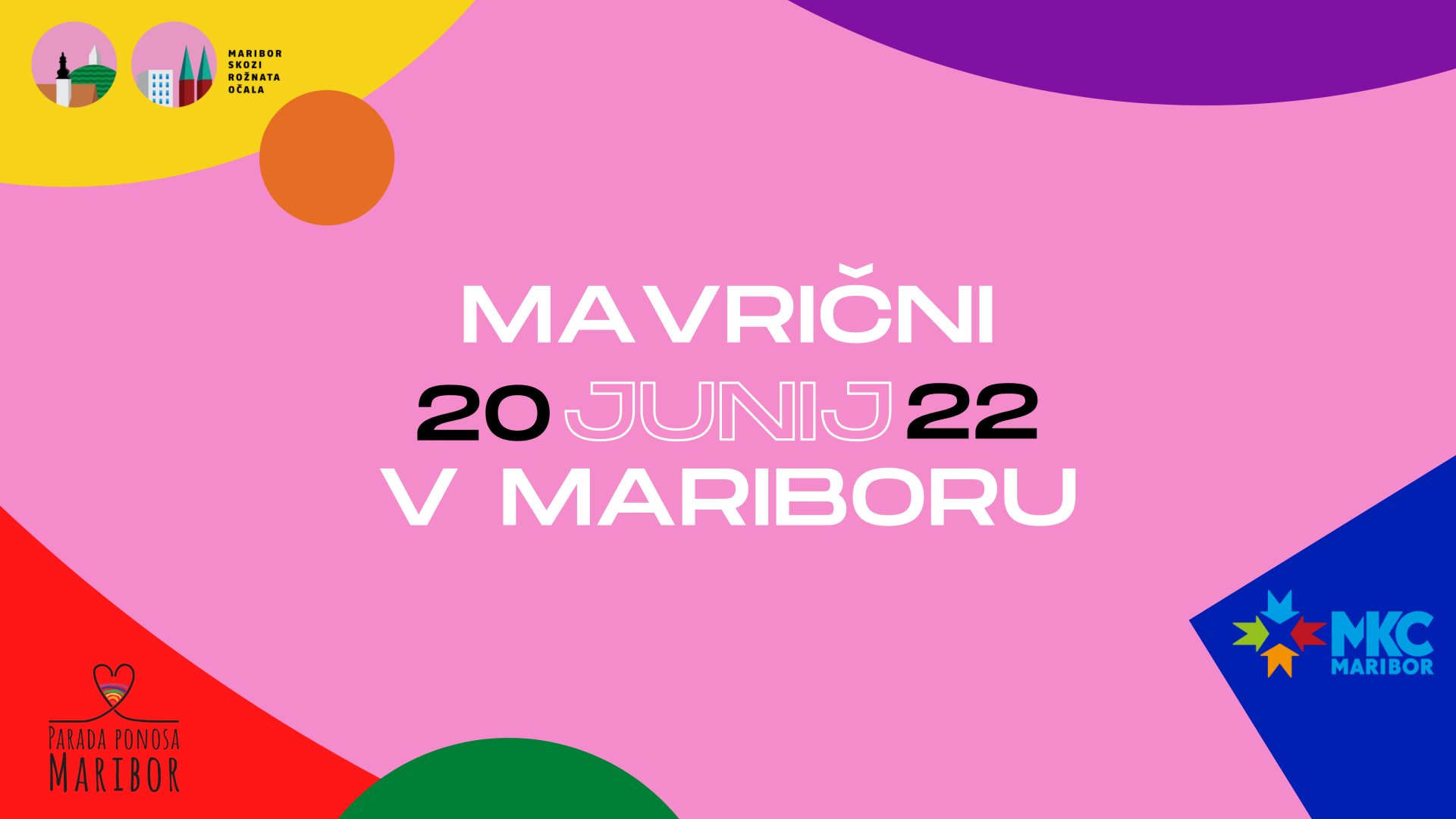 MKC Maribor, Ob železnici 16, MariborMesec ponosa skupnosti LGBTQIA+ bomo tudi letos obeležile_i z zdaj že dobro znanim Mavričnim junijem v Mariboru, v okviru katerega ekipa Maribor skozi rožnata očala ponovno obljublja veliko odličnih vsebin. V Mariboru letos ne korakamo na paradi, a kljub temu upamo, da se bomo v čim večjem številu ponosno srečevale_i na ulicah, v družbi, načrtovano in spontano – kot seveda tudi na dogodkih, ki jih za vas pripravljamo.