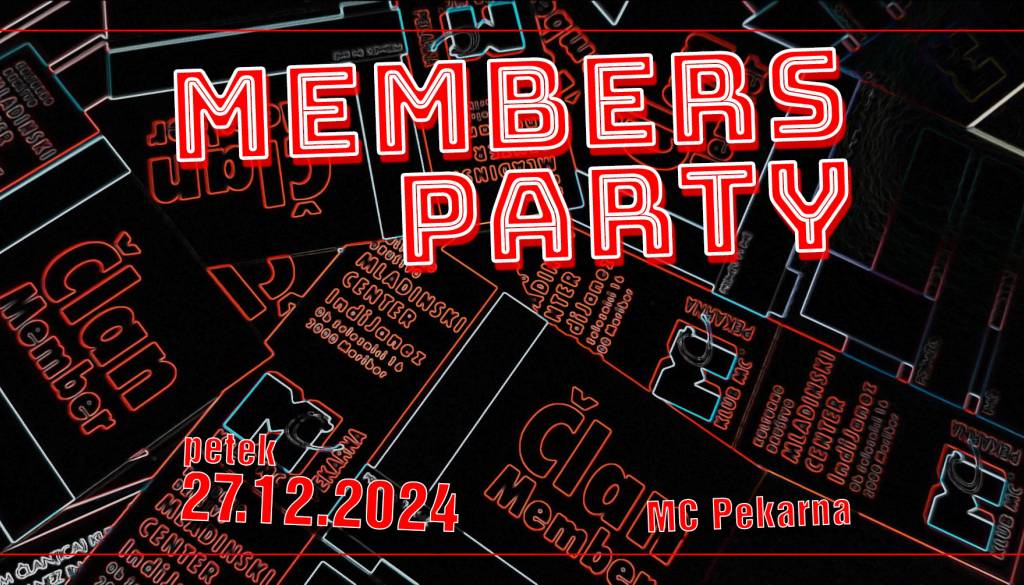 Members je kot obletnica valete za alternativce, ki smo se od leta 1994 pa vse do danes kalili v ritmih undergrounda in nam je vsebina bila pomembnejša od zunanje podobe. Folk, ki ga nisi videl/a že celo večnost, muzika na gas, spomini in skomini.