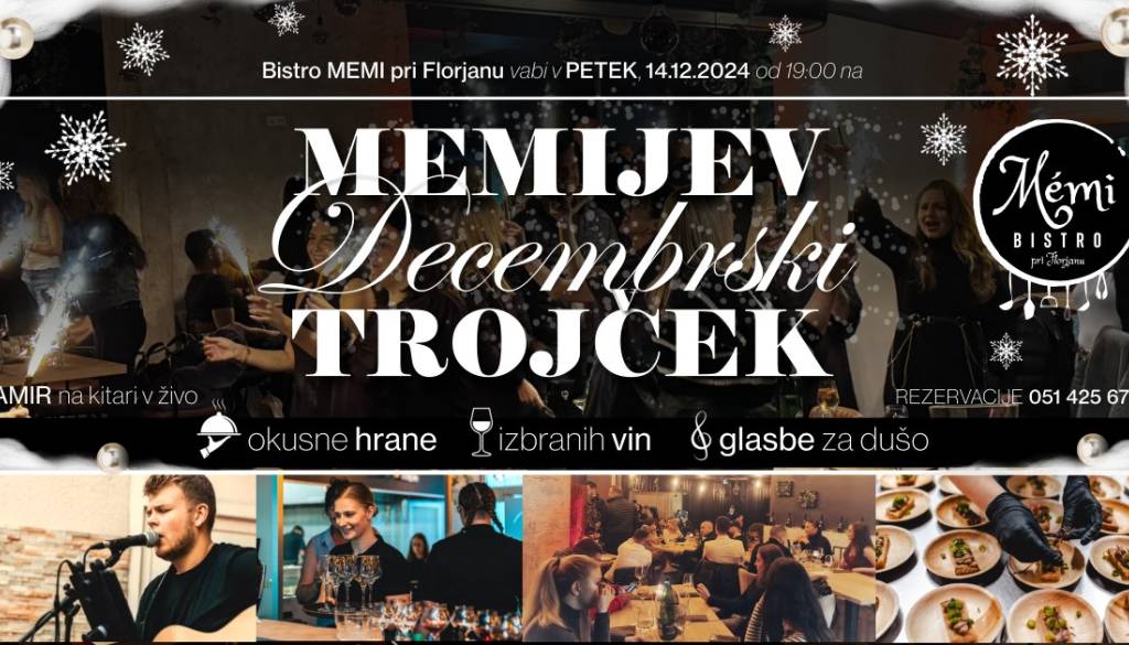 Grajski trg 6, MariborV soboto zvečer, 14.12.2024, se bo v naši restavraciji odvijal OKUSNI DECEMBRSKI TROJČEK, večer odlične glasbe, okusne hrane ter izbranih vin.