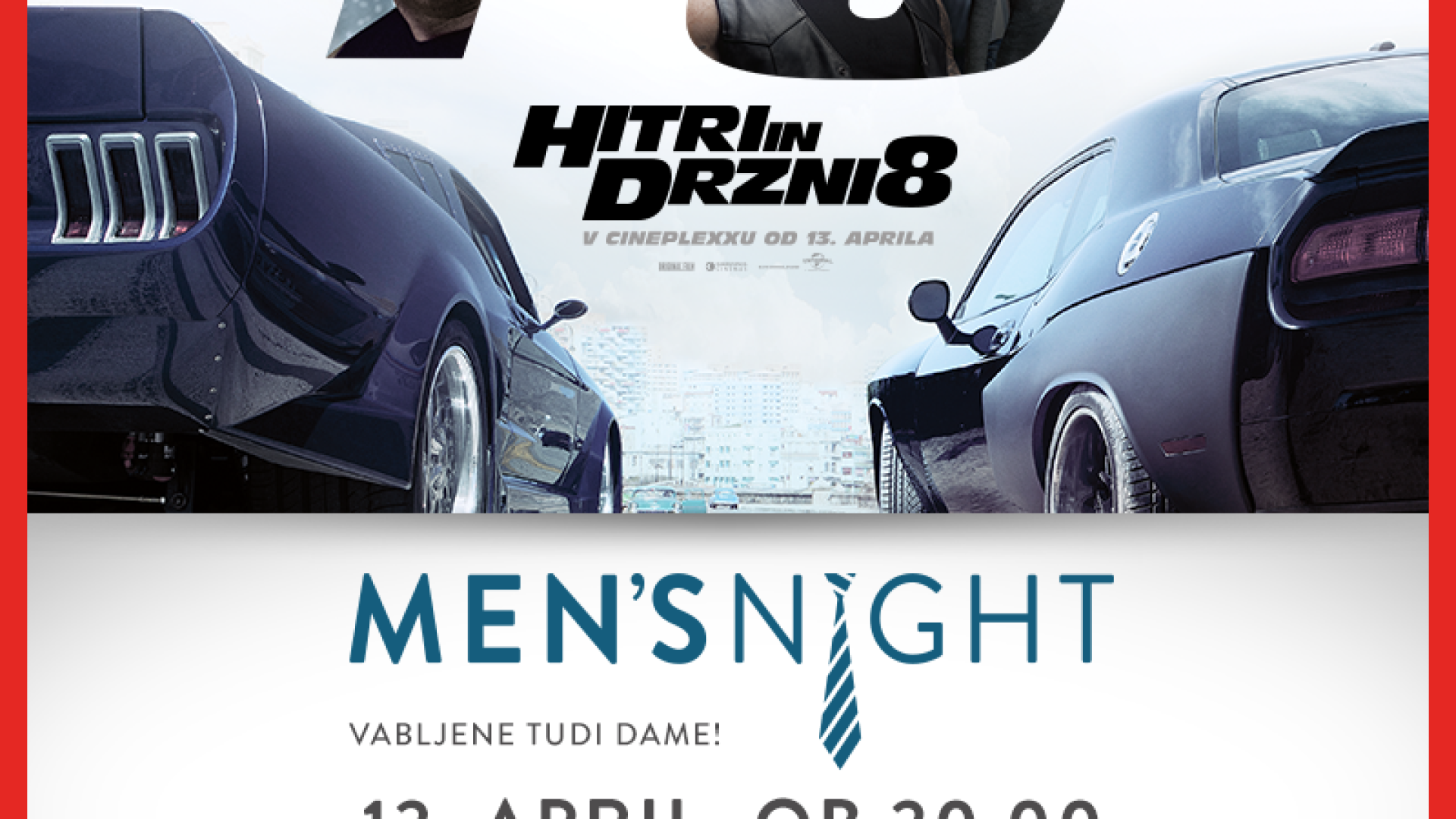 V sredo, 12. aprila ob 20:00 se z dogodkom Men's night na velika platna Cineplexxa vrača mega uspešna franšiza, ki jo povezujejo adrenalinski pregoni, vonj po oktanu, hitrost in želja po maščevanju -akcijska poslastica Hitri in drzni 8 z igralsko zasedbo: Vin Diesel, Dwayne Johnson, Charlize Theron, Jason Statham, …