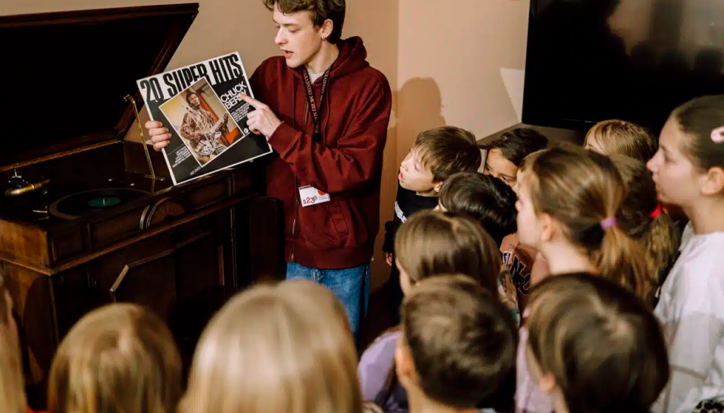 Pokrajinski Muzej MariborV okviru Kulturnega dnevnika bodo učenci obiskali gostujočo razstavo Predmeti veselja v Kinu Partizan, ki predstavlja izbor predmetov iz zbirk Pomurskega muzeja, povezanih z različnimi oblikami veselja – od umetnosti in druženja do porok, rojstev, otroških iger, glasbe, praznikov in starih šeg. Otroci bodo raziskovali, kako so ljudje nekoč izražali veselje v vsakdanjem in prazničnem življenju, ter spoznavali pomen predmetov, ki so jih spremljali ob posebnih priložnostih. Program bodo dopolnile nekoč priljubljene igre s kartami ter ogled etnološke razstave Pokrajinskega muzeja Maribor, kjer bodo učenci spoznali panjske končnice, tradicionalno gradnjo hiš in življenje na podeželju.