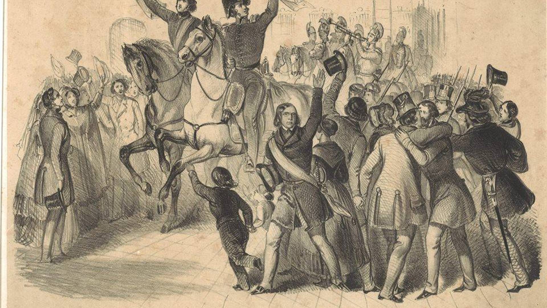 Pokrajinski Muzej MariborPredstavitev grafik na temo marčne revolucije 1848 na Dunaju, delo dunajskega slikarja B. Bachmanna Hohmanna in litografa Franza Kollarza iz sredine 19. stoletja.