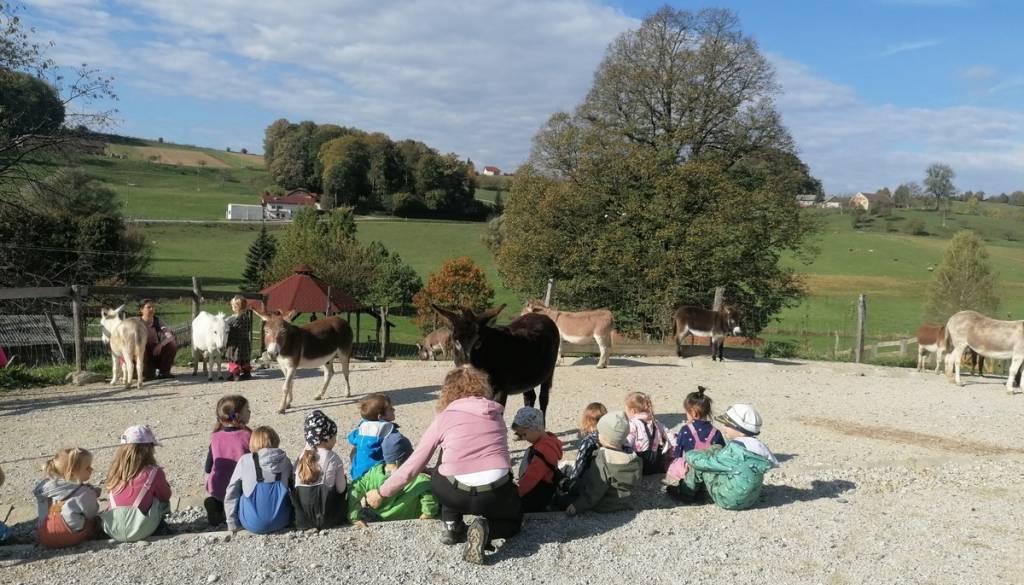Tokratno nedeljsko dopoldne je namenjeno otrokom do petega leta, ki bi se prišli z našimi oslički pocartat v družbi staršev. V uri in pol bomo počasi prehodili vse pomembnejše kotičke naše kmetije in veliko božali osličke, konjičke, lame, alpake in kozice.