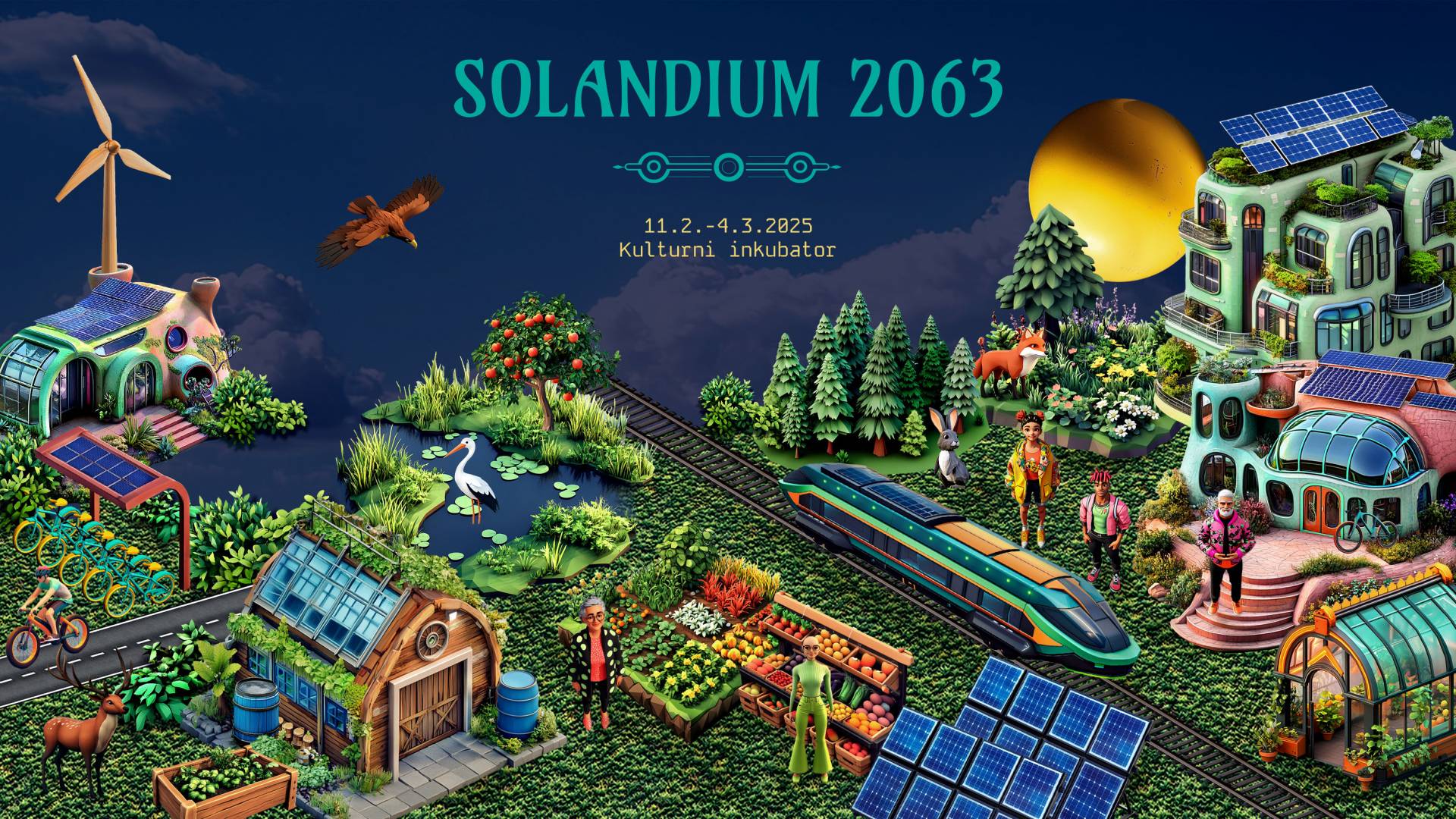 Igro žanra solarpunk z vgrajeno umetno inteligenco je s finančno podporo Ministrstva za kulturo RS razvil multimedijski umetnik Nejc Trampuž skupaj s svojo ekipo. Postavljena je v distopično prihodnost leta 2063, igralčeva misija pa je, da prek dialoga z UI snuje strategije za preobrazbo propadlega robotiziranega centra v ekološko skupnost - ali mu uspelo oblikovati trajnostno družbo? Igra je tudi tehnološki eksperiment, saj so bili elementi igre generirani z najnovejšimi orodji UI. Sledi estetiki in vrednotam solarpunka, optimistično stremi k pravični in ekološki družbi ter nagovarja k odgovorni uporabi tehnologije. Solandium 2063 raziskuje vlogo UI v tranziciji k trajnosti, izpostavlja njene potenciale pri reševanju okoljskih izzivov in opozarja na negativne plati, kot so visoka poraba energije in pristranskosti. V jedru projekta je prepričanje, da ima vsak posameznik moč in odgovornost prispevati k boljši prihodnosti ter vabi k aktivnemu soustvarjanju sveta.