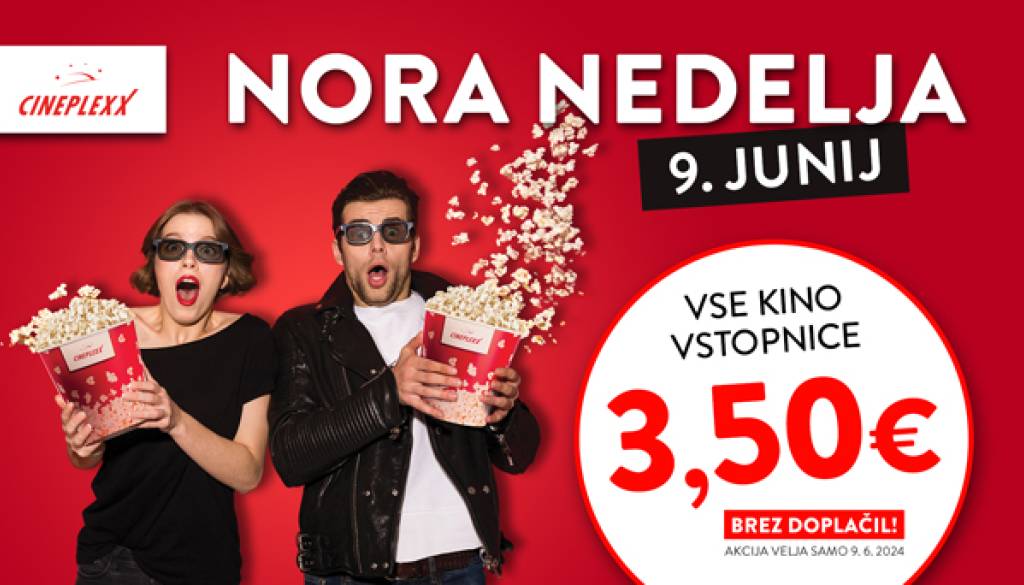 Samo v nedeljo, 9. junija bo cena vseh kino vstopnic le 3,50 evra. Brez doplačil!