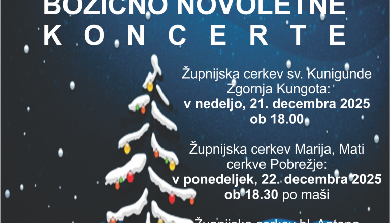 Koncert bo v nedeljo 05.januarja 2025 ob 17.00 uri v cerkvi bl. Antona Martina Slomška v Košakih.