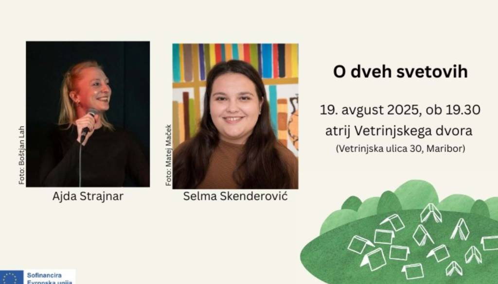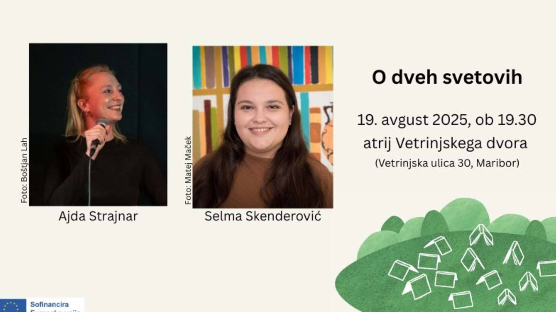 Vetrinjski dvorJavna agencija za knjigo RS in Društvo slovenskih književnih prevajalcev vabita na literarni pogovor z naslovom »O dveh svetovih«, ki bo potekal v torek, 19. avgusta 2025, ob 19.30, v atriju Vetrinjskega dvora (Vetrinjska ulica 30, Maribor).