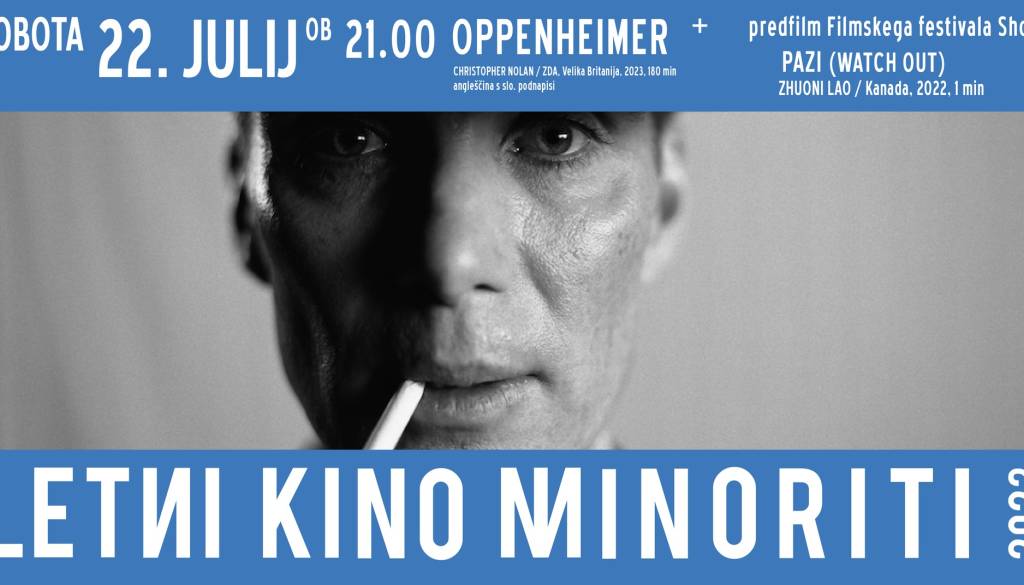 Letni kino MinoritiNova vizualna poslastica Christopherja Nolana (Temni vitez, Medzvezdje, Izvor, Dunkirk id.) je eden najbolj pričakovanih filmov leta. Napeta biografska srhljivka spremlja arhitekta atomske bombe Roberta Oppenheimerja, ki je spremenil tok zgodovine in postal »smrt, uničevalec svetov« - kot priča njegov slavni citat iz Bhagavadgite ob uničenju, ki ga je bomba povzročila.
