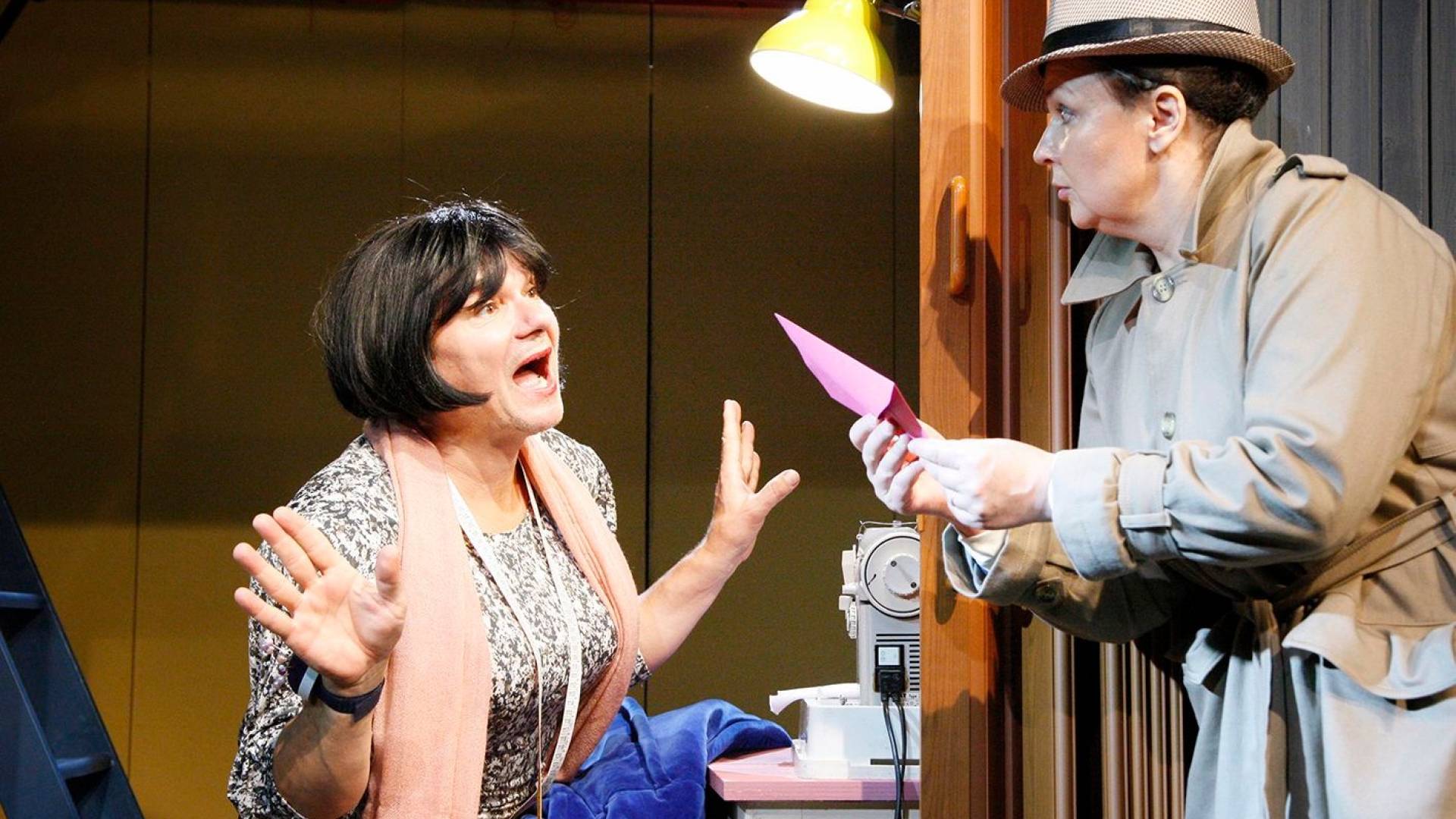 Gledališko zaodrje sodi med najzanimivejše skrivnosti, kukanje za oder je kot razkrivanje čarovnij. Detektiva A in Ž se odločita, da bosta razkrinkala dobro varovane zakulisne postopke, zato smukneta mimo vratarja in začneta detektivsko odisejado po gledaliških hodnikih. Nista vedela, da bosta v tem čudnem blodnjaku naletela na vse mogoče ljudi, ki jih v gledališču nikoli ne vidimo, pa vendar brez njih predstav sploh ne bi bilo. Najdeta vse polno skrivnih prehodov, navadno zavitih hodnikov z obilico vrat, izza katerih je slišati nenavadne zvoke. Za vrati v delavnicah ropotajo stroji, tam nastajajo kostumi, maske, tam so spravljeni rekviziti, lasulje, tam se lepotičijo, frizirajo … Zanima ju, kdo je tisti, ki kostume nariše, in kdo jih nato zašije? Kaj pomeni mizanscena? Je to mogoče miza za sceno? In zakaj po hodnikih nekdo neprestano govori, koliko je ura? Kako to, da imajo v gledališču nekoga, ki mora neprestano šepetati?