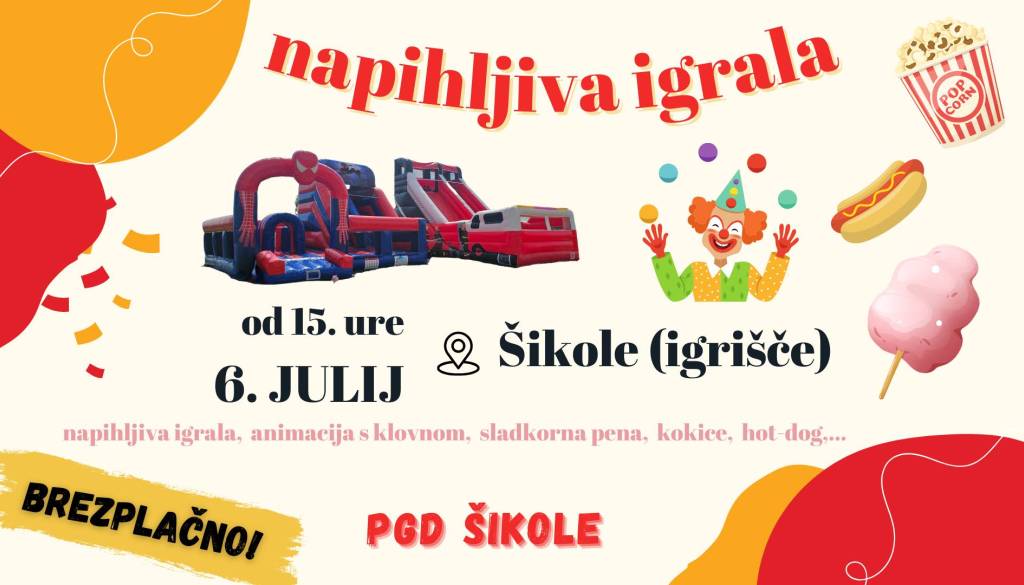 Otroška zabava Matic Vlaj | 1. julij 2024 10:23 v Za otroke Termin Sobota, 6. julij 2024 15:00 Lokacija Šikole 25, 2331 Zabava z napihljivimi igrali