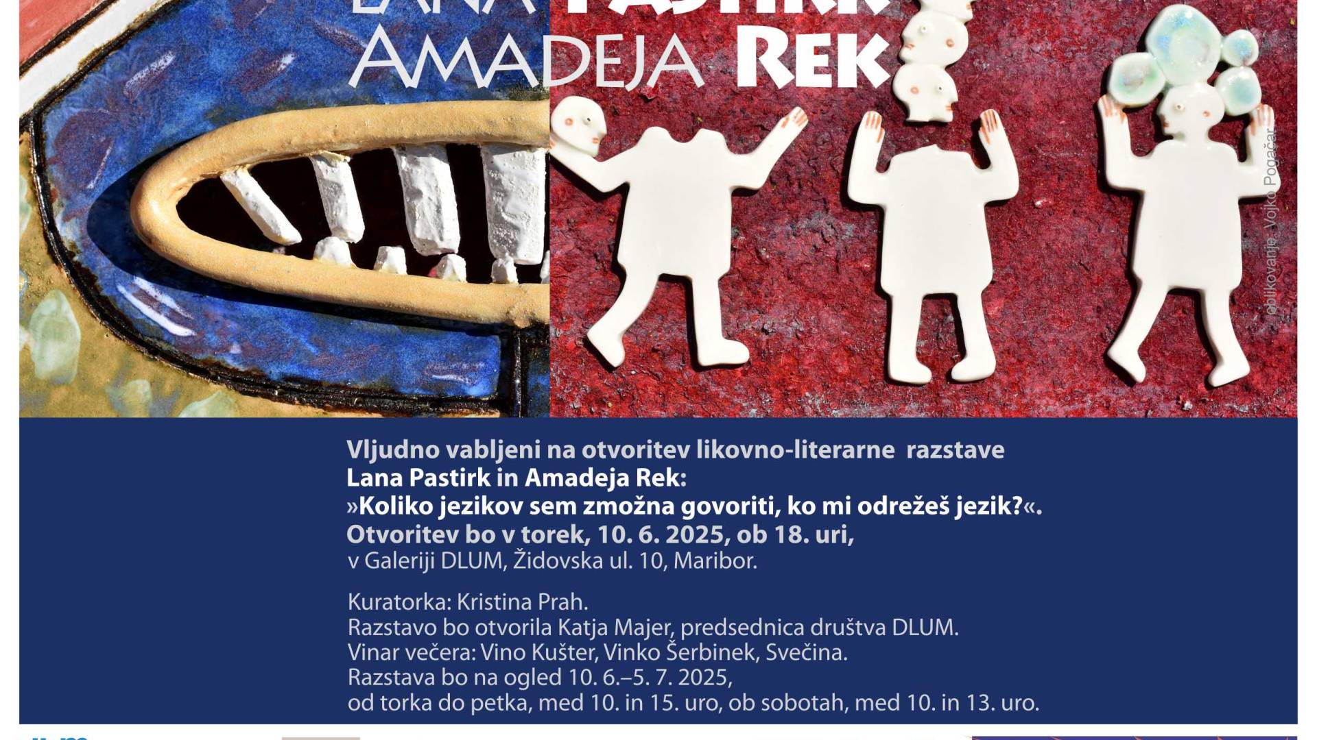 Otvoritev likovno-literarne razstave Lana Pastirk in Amadeja Rek: »Koliko jezikov sem zmožna govoriti, ko mi odrežeš jezik?«