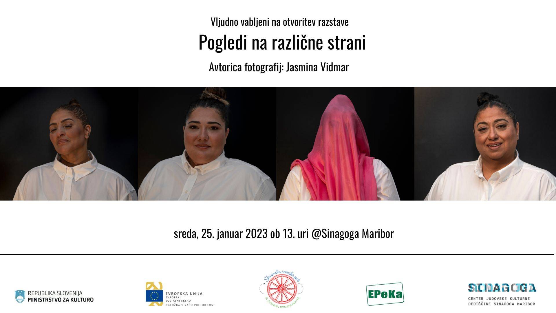 Sinagoga Maribor Židovska ulica 4V sodelovanju s pripadniki romske skupnosti in fotografinjo Jasmino Vidmar smo v Združenju EPEKA, so.p., znotraj projekta Slovenska romska pot, ki ga financira Ministrstvo za kulturo, pripravili fotografsko razstavo z naslovom Pogledi na različne strani, ki jo bomo v sredo, 25. januarja ob 13. uri otvorili v predprostoru Sinagoge Maribor.