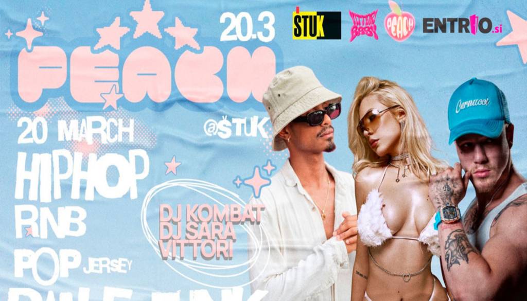 Peach, DJ Sara, Kombat in Vittori prihajajo na @ŠTUK! Naša največja Peach zabava do zdaj se bo zgodila 20. marca v ŠTUK-u, z eno najbolj vročih DJ-k na balkanski sceni, ki združuje hip hop, R&B, pop, baile funk in jersey club zvok.