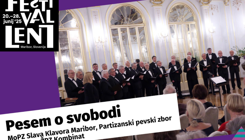 Trg Leona ŠtukljaSkupni koncert treh raznovrstnih nosilcev partizanskega petja na Festivalu Lent 2025: Partizanski pevski zbor Ljubljana, Ženski pevski zbor Kombinat in Moški pevski zbor Slava Klavora.