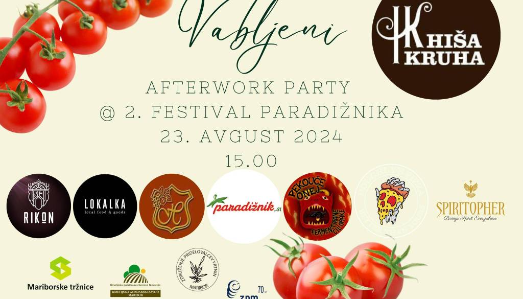 Mariborska tržnicaV sklopu 2. Festivala paradižnika vas vljudno vabimo na Afterwork party 🍅, dogodek, ki bo združil sproščeno druženje s kulinaričnimi užitki in degustacijami vrhunskih lokalnih proizvodov.
