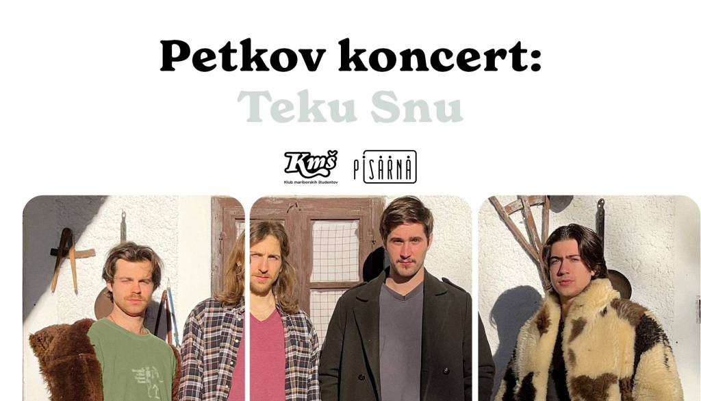 PisarnaV petek, 12. 4. 2024, ob 21.00 se nam bo v Pisarni predstavil mlad bend Teku snu. 🎵