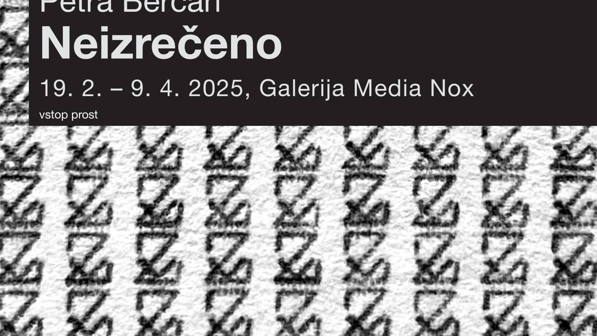Galerija Media NoxV sredo, 19. februarja 2025, se ob 18. uri v Galeriji Media Nox odpira konceptualna razstava Neizrečeno umetnice Petre Berčan. Kuratorka je Sara Nuša Golob Grabner, razstava pa bo v galeriji na ogled do 9. aprila 2025.