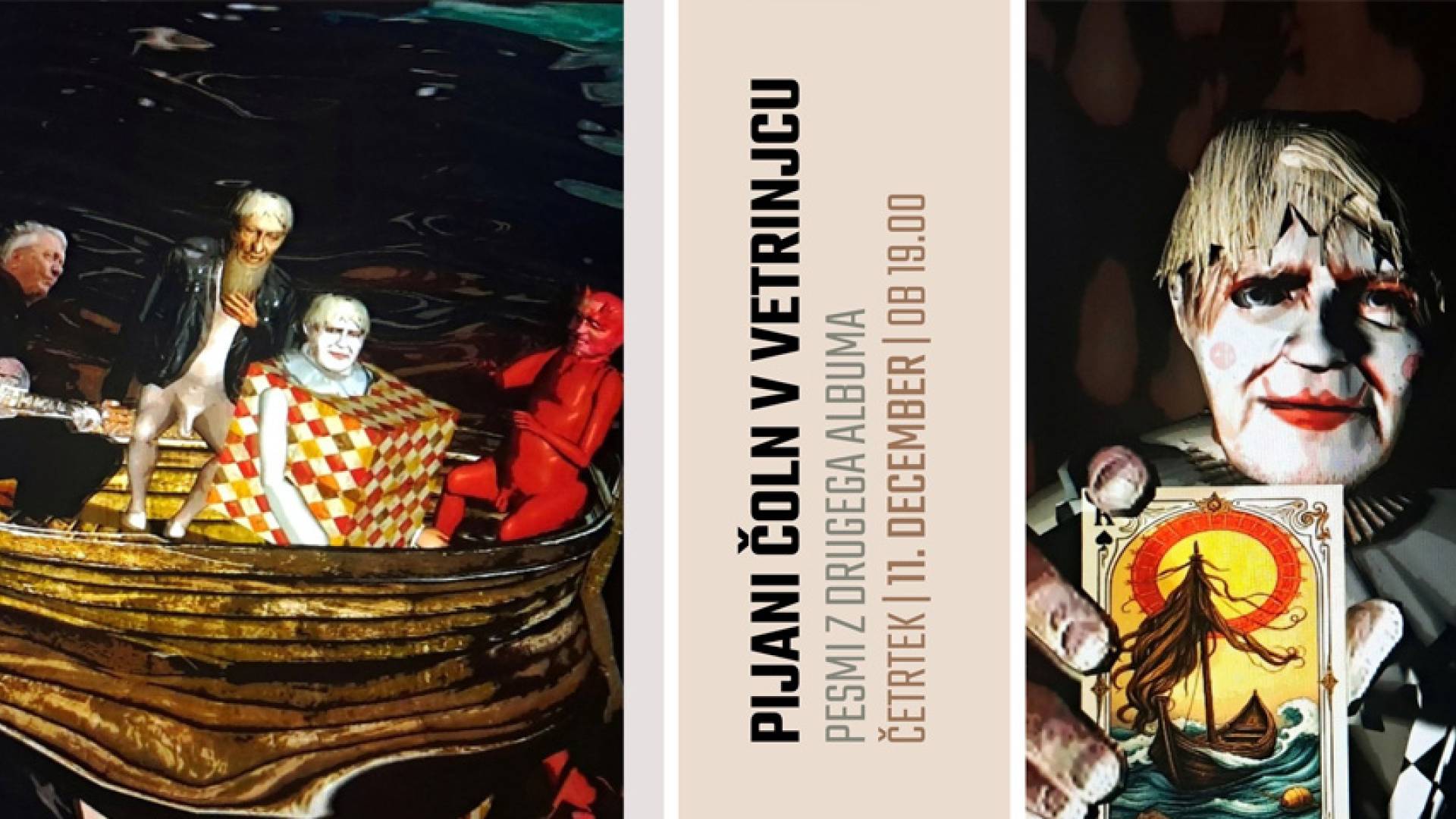 Vetrinjski dvorMariborska skupina PIJANI ČOLN se po letu dni vrača v Vetrinjca s pesmimi z drugega albuma. Po pesmih s Pajčevine, ki so lani z občuteno glasbeno in poetsko prefinjenostjo, z izjemno melodičnostjo, nikoli na račun glasbene strukturiranosti, a zato s čutom za skladnost, opozorile nase tiste, ki še poslušajo Glasbo in Poezijo. Zdaj prihajaja Čas. Kakšen bo bomo preverili v Vetrinjcu.