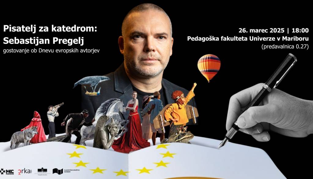 Pedagoška fakulteta Univerze v MariboruMladinski kulturni center Maribor (MKC Maribor) bo v sklopu literarnega programa MKC ČRka skupaj s partnerji obeležil Dan evropskih avtorjev. V sredo, 26. marca 2025, bo v predavalnici 0.27 Pedagoške fakultete Univerze v Mariboru gostoval Sebastijan Pregelj. Za kateder bo sedel ob 18. uri, dogodek je brezplačen in odprt za javnost.