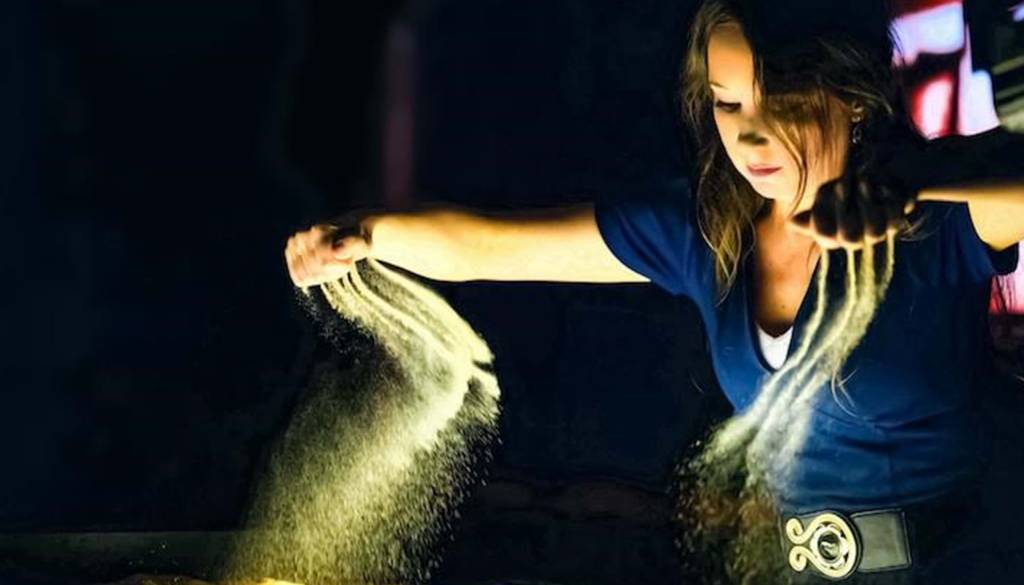 Poetična predstava brez besed pripoveduje zgodbo s peščenimi slikami, ki jih pred nami ustvarja umetnica. Minljive in spreminjajoče se podobe na osvetljeni stekleni površini sledijo glasbi in predstavljajo nenehno spreminjanje naših življenj, sestavljenih iz trenutkov sedanjosti, ki kot sipki pesek odtekajo v preteklost.