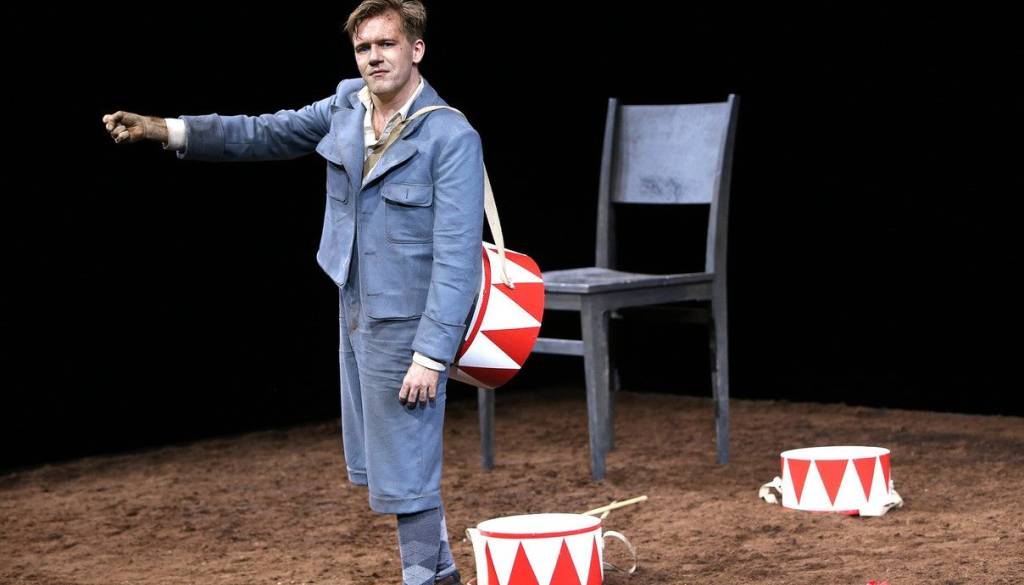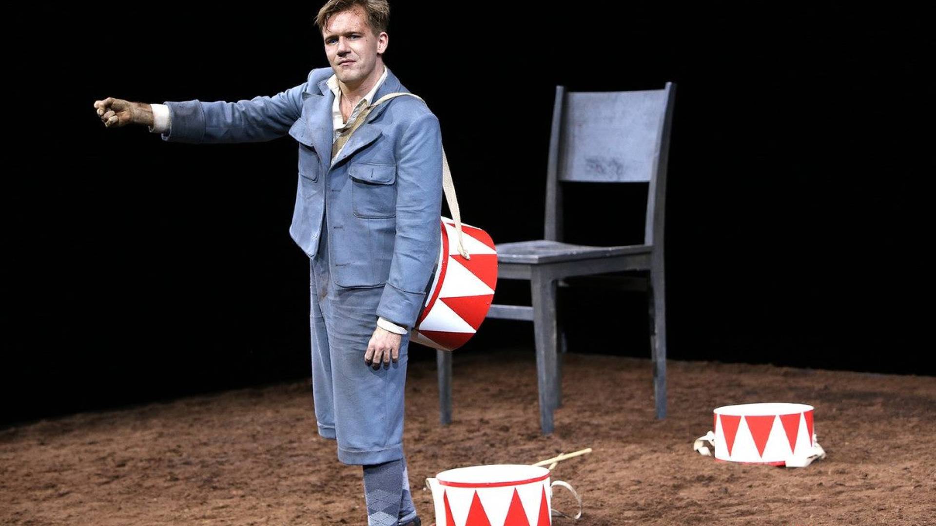 Novorojenček Oskar Matzerath svet prepozna kot univerzalno katastrofo in ga zavrne. Le kovinski boben, ki mu ga je obljubila mati, zanj razpre sprejemljivo perspektivo preživetja: privzame groteskno eksistenco bobnarja, sicer umetnika z ambivalentno izrazno potenco in dvomljivo motivacijo. Na svoj tretji rojstni dan se Oskar nenadoma odloči, da ne bo več rastel, ampak bo raje opazoval boben in nanj igral. Oskar nato kot nezanesljivi pripovedovalec s perspektive črva opisuje vzpon fašistične ideologije in njene akcije, poroča o prešuštvu in o noči pogroma, pri tem pa povezuje osebno zgodbo s tragično zgodovino 20. stoletja. Oskar postane opazovalec in hkrati udeleženec sveta, v katerem je mogoč propad civilizacije, kakršen se je zgodil s holokavstom. Nobelovec Günter Grass se je čutil soodgovornega za zločine, ki so bili med vojno storjeni v imenu nemškega naroda, zato velja njegov Pločevinasti boben brati tudi kot avtobiografsko namero, da bi laže prepoznali mehanizme lastne zavedenosti oziroma zapeljanosti. Kljub vsem kontroverznostim, ki so se spletle okrog romana in avtorja, je besedilo svojevrstna prelomnica nemške povojne literature, saj se v njem pod okriljem družbenokritične avtorske pisave prepletajo strogi realizem in elementi magičnega. Režiser Oliver Reese je izvirno konstelacijo pripovednega toka romana z namenom večje koherentnosti dramske naracije in diferenciacije igralskih registrov adaptiral skozi perspektivo zgolj ene osebe – glavnega junaka Oskarja, ki ga upodobi igralec Nico Holonics.