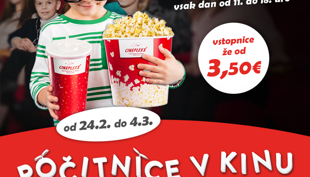 V času šolskih počitnic bo cena kino vstopnic že od 3,50 Eur, za člane Družinskega filmskega kluba bo na voljo tudi ugoden meni z okusno pokovko.