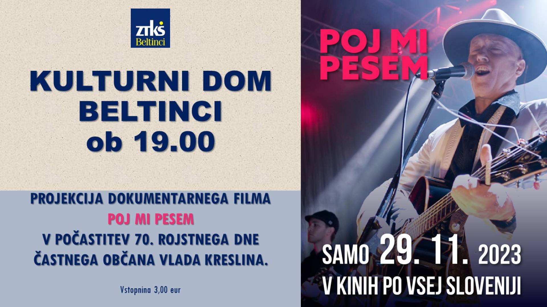 POJ MI PESEM Projekcija dokumentarnega filma v počastitev jubileja častnega občana Vlada Kreslina