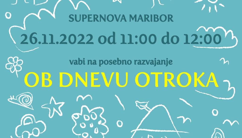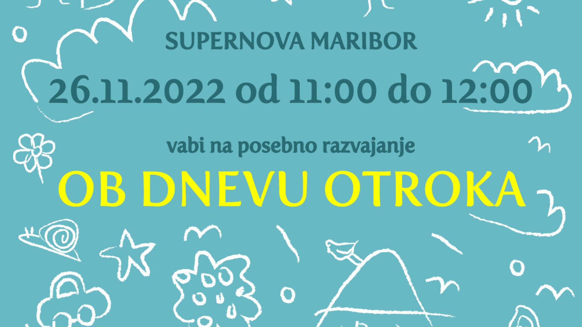 Supernova MariborOb koncu novembra SUPERNOVA MARIBOR 26.11.2022 od 11:00 do 12:00 vabi na posebno razvajanje OB DNEVU OTROKA.