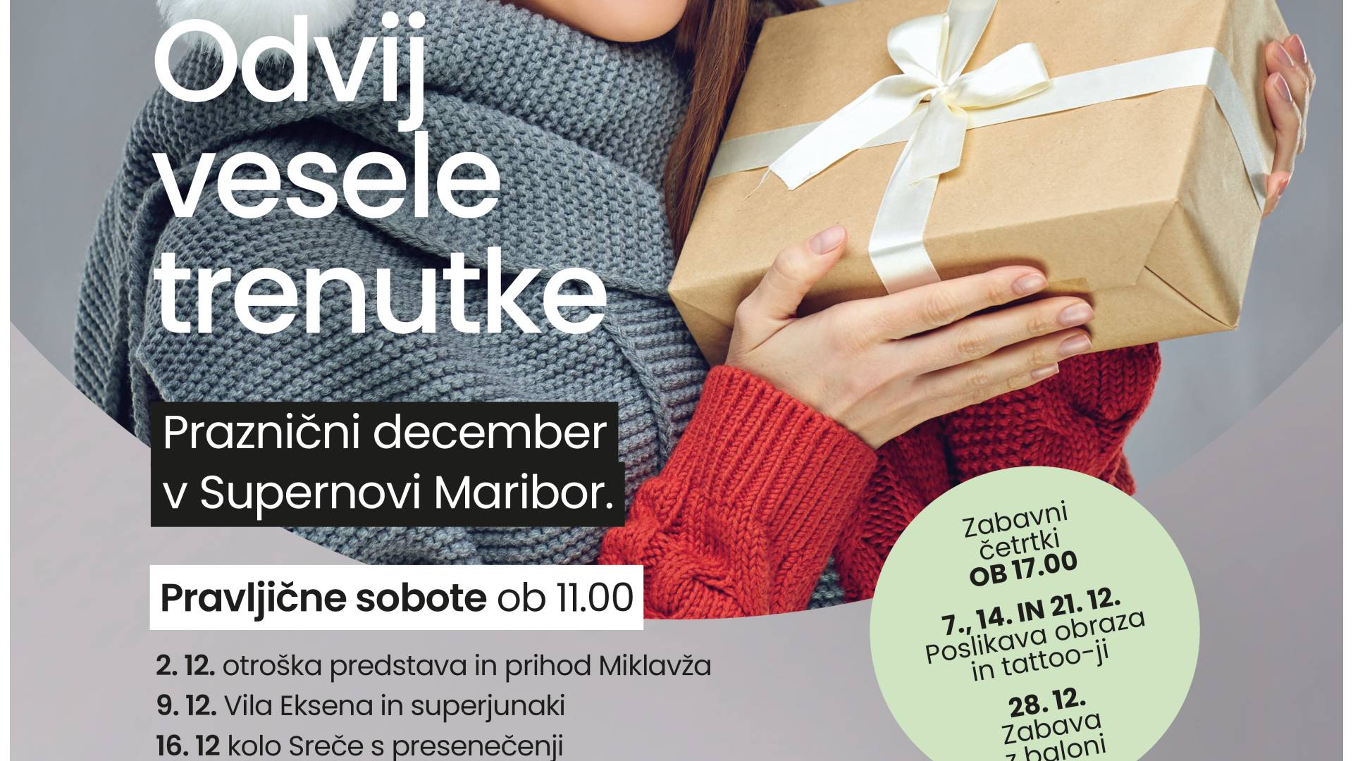 Praznični december v Supernovi Maribor Jana Bohar | 11. december 2023 10:58 v Zabava Termin Ponedeljek, 11. december 2023 10:58 - Nedelja, 31. december 2023 0:00 Lokacija Supernova Maribor Vabljeni!