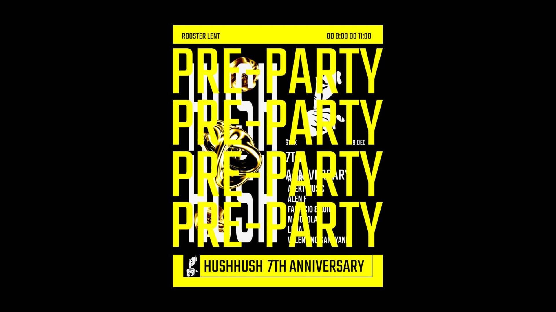 Pridi na pre-party, ki bo postavil tempo za našo 7. obletnico. Dogodek se bo odvijal v Rooster Lent, kjer bomo v pravi rejverski maniri pričakali začetek nepozabne techno noči.