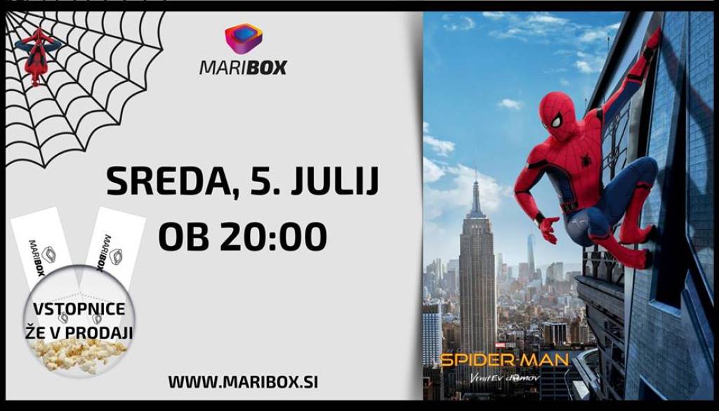 MARIBOX Loška ulica 13 2000 MariborV hitu SPIDER-MAN: VRNITEV DOMOV igra mladega Spider-Mana Tom Holland, ob njem pa bodo še Robert Downey Jr. v vlogi Iron Mana, Marisa Tomei v vlogi tete May in Michael Keaton v vlogi glavnega negativca.