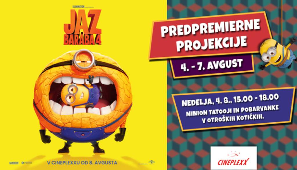 Cineplexx MariborMed prvimi si oglej animirano komedijo JAZ, BARABA 4, ki se bo predpremierno predvajala od 4. do 7. avgusta 2024 v Cineplexxu Maribor!