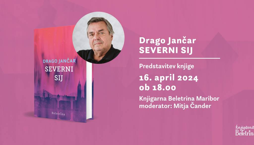 Grajski trg, MariborToplo vabljeni, da se nam pridružite na še enem literarnem popoldnevu v naši novi knjigarni v centru Maribora. Tokrat bomo gostili enega najbolj uveljavljenih in prevajanih slovenskih avtorjev Draga Jančarja, ki se bo ob priložnosti ponatisa knjige Severni sij, katere dogajalni prostor je prav Maribor, pogovarjal z direktorjem založbe Mitjem Čandrom.