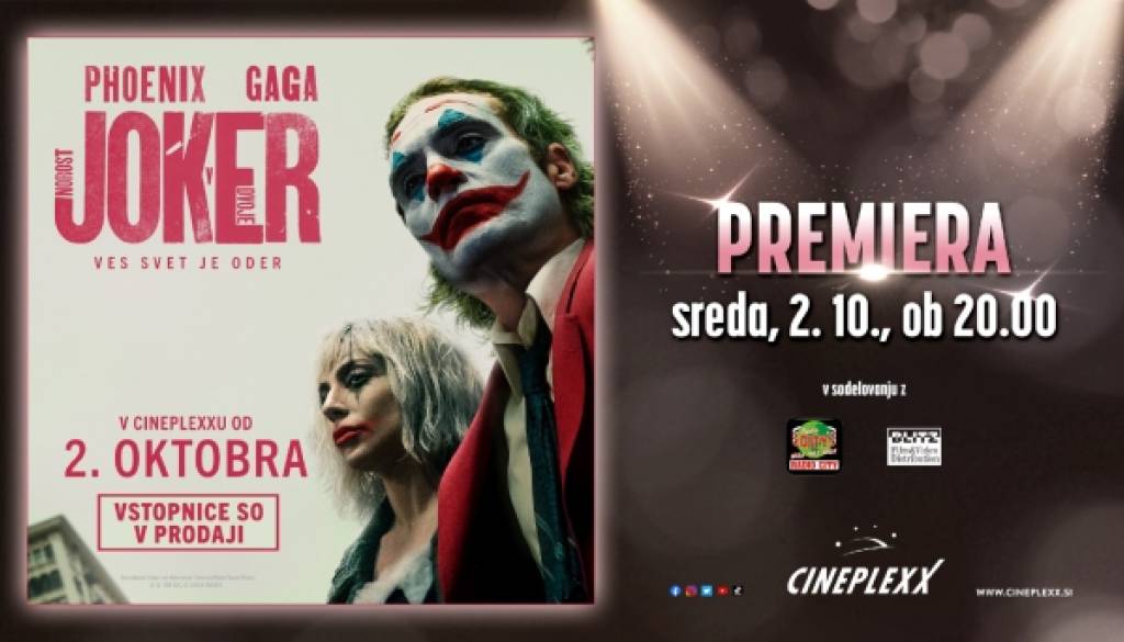 Cineplexx MariborPridruži se na premieri filma JOKER: NOROST V DVOJE, ki bo v Cineplexxu Maribor, že v sredo, 2. oktobra 2024, ob 20:00!