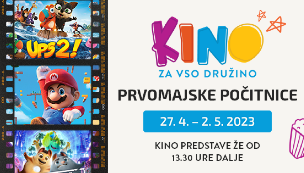 Za najmlajše priporočamo ogled animiranih filmov Super brata Mario ter Ups 2 pustolovščina se nadaljuje, ki si ju lahko ogledate 2D in 3D sinhronizirani verziji. Prav tako, pa si še vedno lahko ogledate animirani pustolovščini Pozabljenčki ter Moja poredna vila.