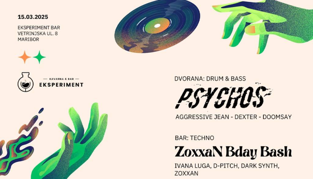 V dvorani ga tresejo ptujski Psychosi v Drum & Bass ritmih, v baru pa naš ZoxxaN praznuje svoj rojstni dan v družbi Techno jezdecev! 🐎