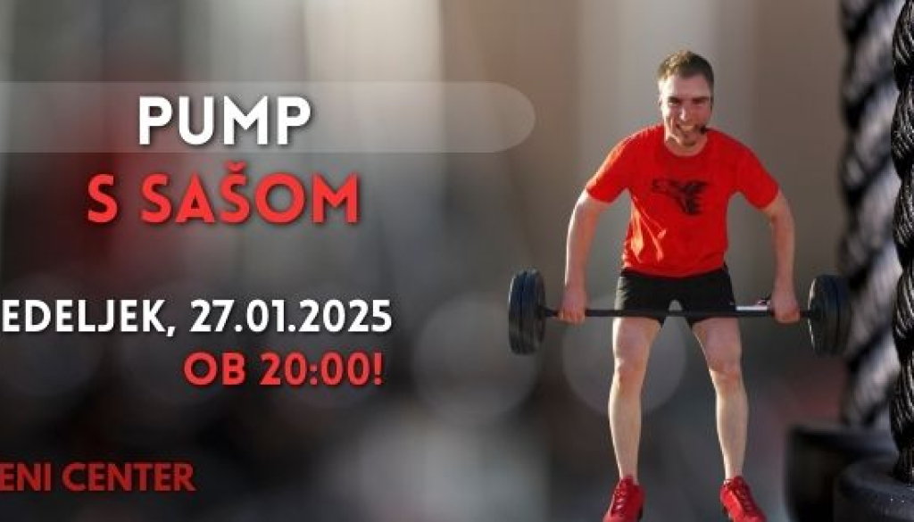 Pridruži se nam na uri Pumpa s Sašom! Preizkusi vadbo, ki ti bo prebudila celo telo v odlični energiji in družbi. 😎